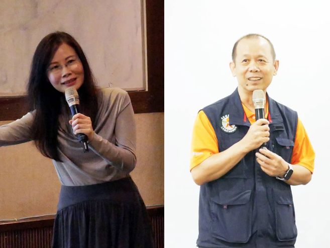 致福益人學苑校務長常琬瑤(左)以一位「接棒者」身分分享。南港社區大學副校長曹錫智(右)投入社大經營已逾25年。(圖 / 記者吳旻樺)